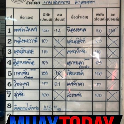 คู่ที่ 1. นิเชาว์ จิตรเมืองนนท์ พิกัด 101 ปอนด์ น้องบิว ศิษญ์ป๋าโอ พิกัด 101 ปอนด์ คู่ที่ 2. สี่กั๊ก ซูจีบะหมี่เกี๊ยว พิกัด 110 ปอนด์ ดาวมรกต สก.สุไหงยิมส์ พิกัด 110 ปอนด์ คู่ที่ 3. อเมซอน บอลมหาชัย พิกัด