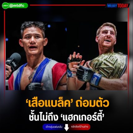 ‘เสือแบล็ค’ ถ่อมตัว ชั้นไม่ถึง ‘แฮกเกอร์ตี้’ ‘เสือแบล็ค ท.พราน49’ ออกมายอมรับว่าตนนั้นยังไม่ถึงชั้นของ โจนาธาน แฮกเกอร์ตี้ แชมป์โลกชาวอังกฤษ แต่พร้อมสู้แน่นอนถ้าได้เจอกัน หลังทำผลงานได้อย่างยอดเยี่ยมในการประเดิมชก ONE รายการใหญ่ ในศึก ONE Fight Night 18 เมื่อเช้าวันเสาร์ที่ 13 มกราคมที่ผ่านมา ลุกมาเอาชนะคะแนน ‘สเตฟาน โคโรดี’ นักชกไอร์แลนด์’ กติกามวยไทย รุ่นแบนตัมเวต (135-145 ป.)